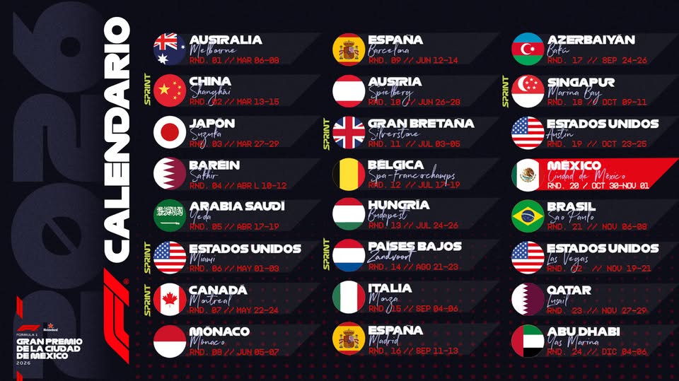 - Información actualizada del calendario F1 2026